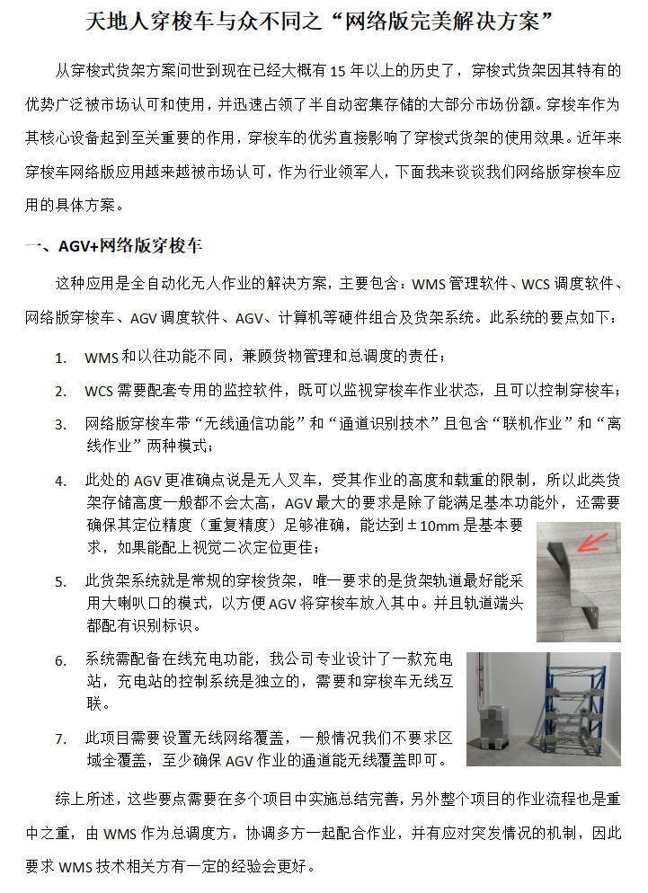 天地人穿梭車與眾不同系列之“網(wǎng)絡(luò)版完美解決方案”